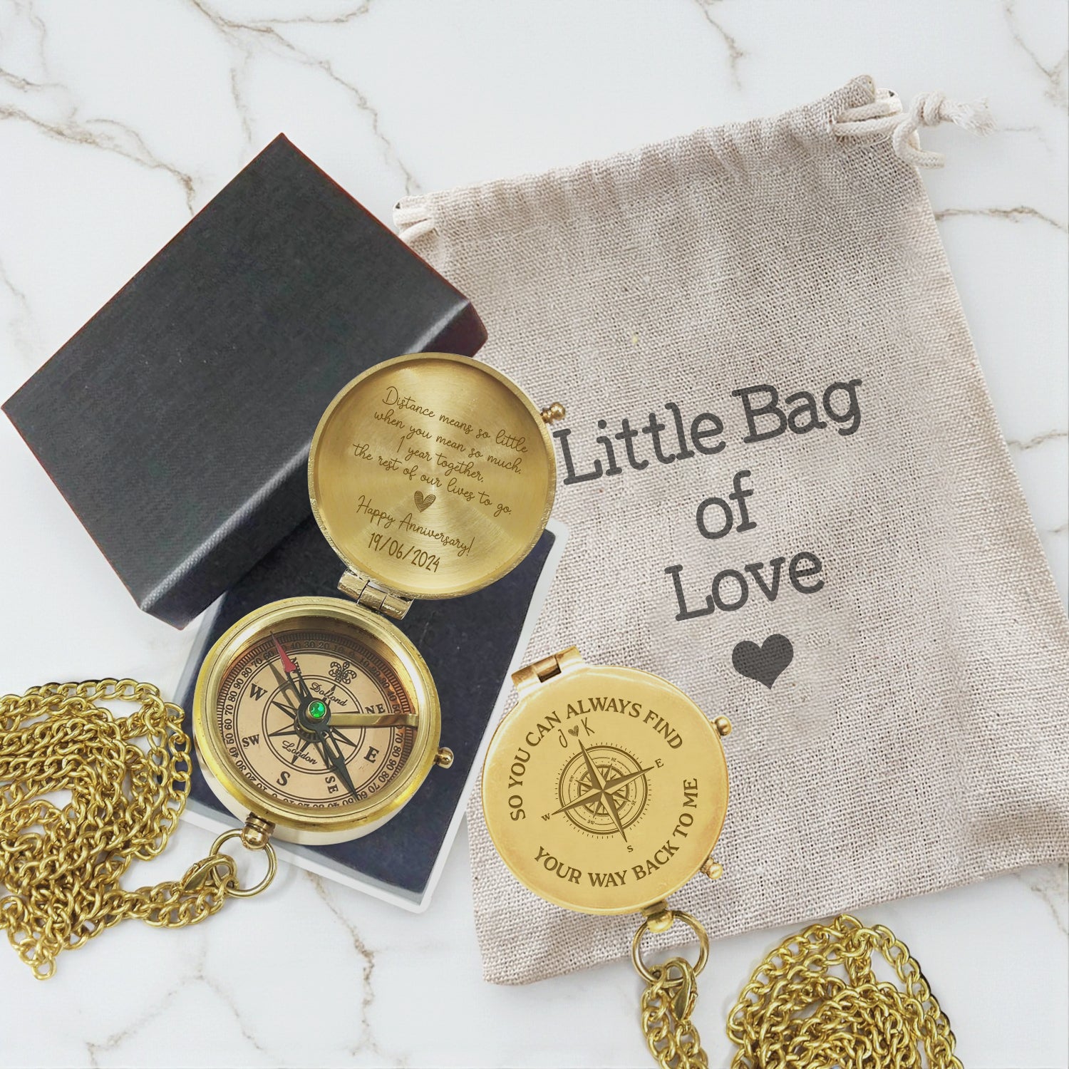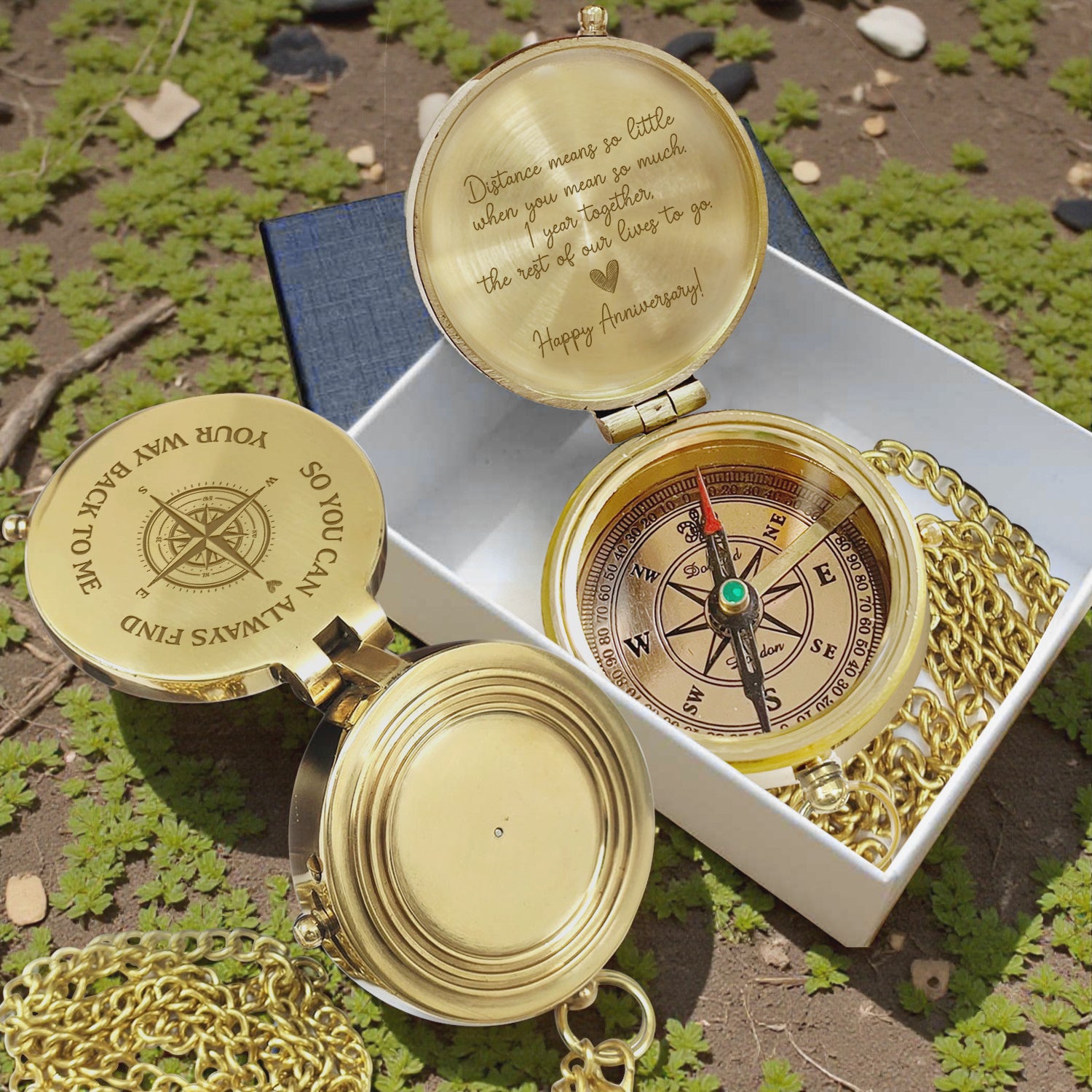 Personalized Engraved Bronze Compass - Handmade 1 year Anniversary Gift for Couples | Custom Name, Date - Gpb26262