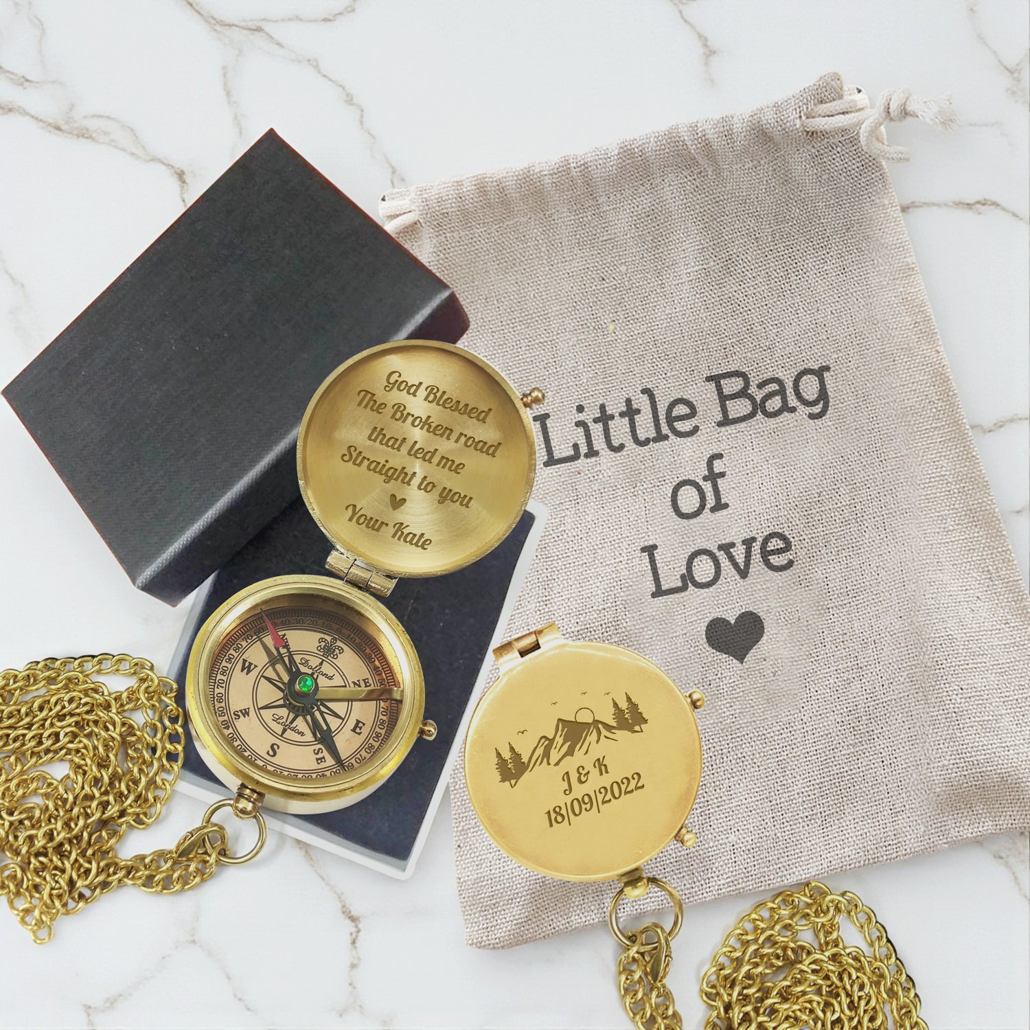 Personalized Engraved Bronze Compass - Handmade 1 year Anniversary Gift for Couples | Custom Name, Date - Gpb26272