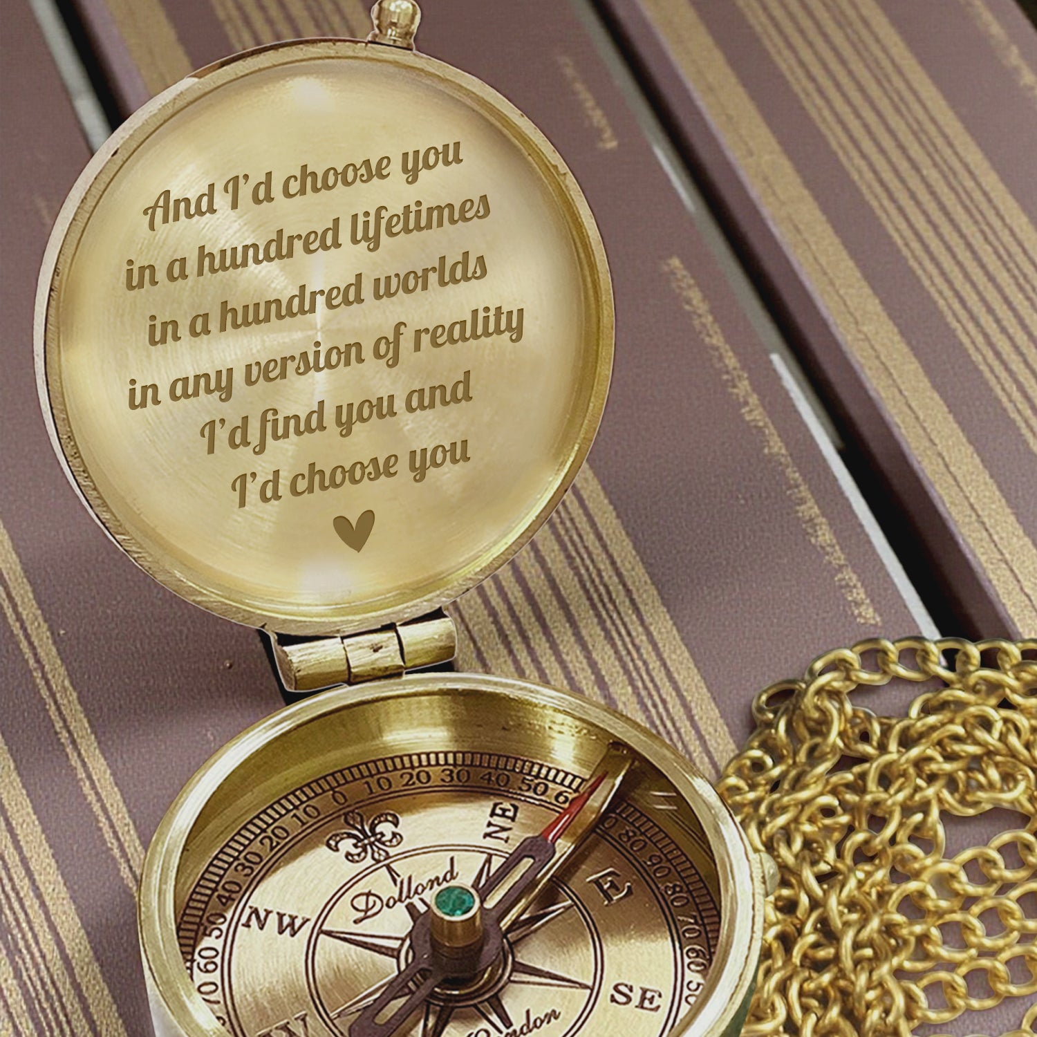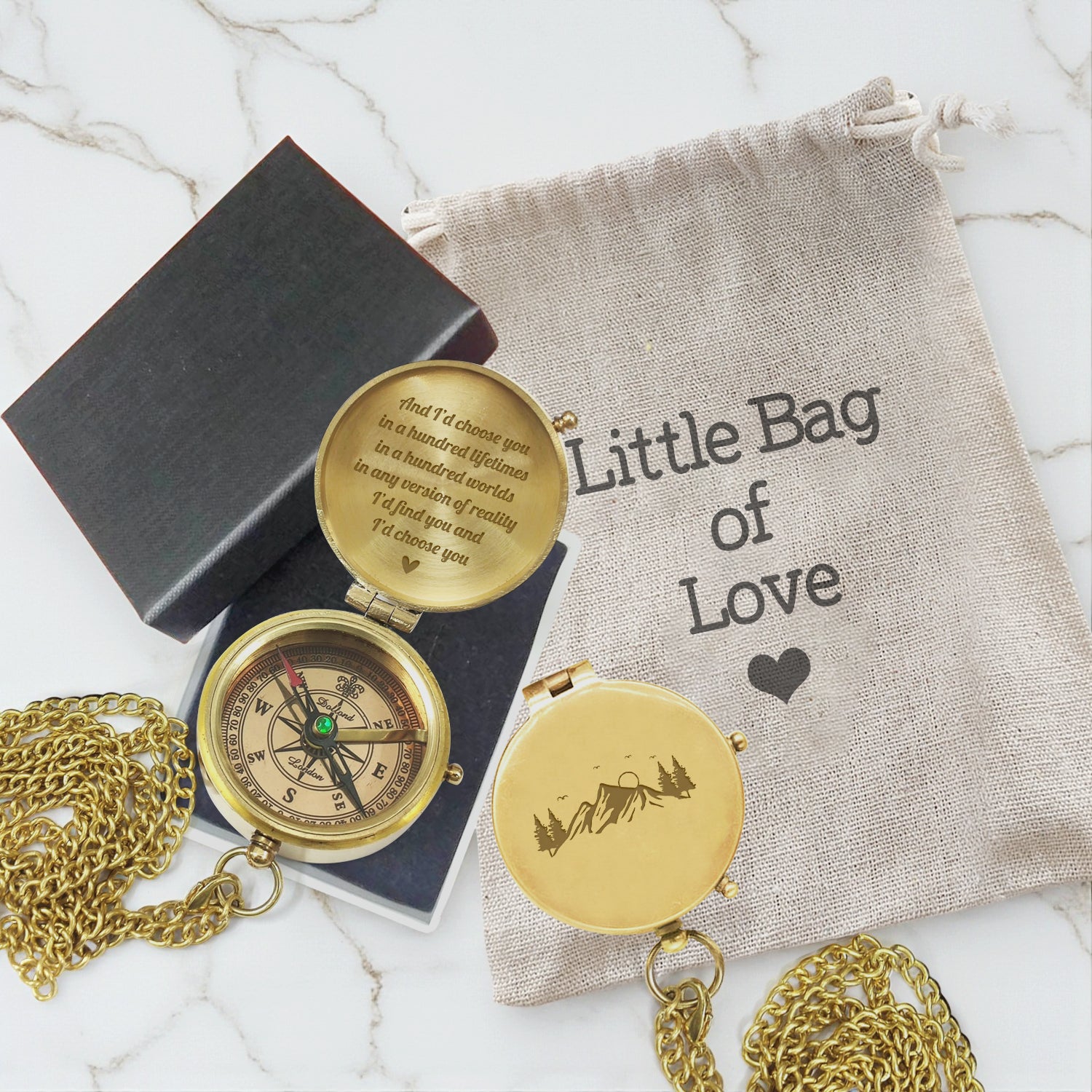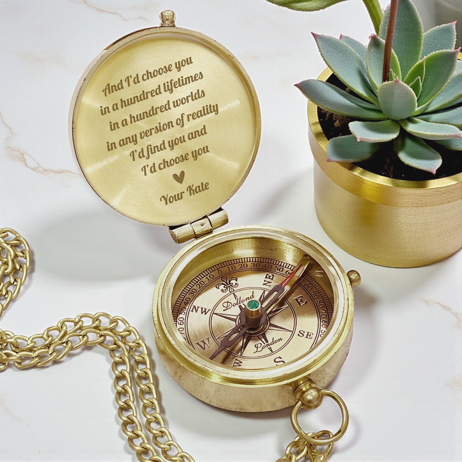 Personalized Engraved Bronze Compass - Handmade 1 year Anniversary Gift for Couples | Custom Name, Date - Gpb26273