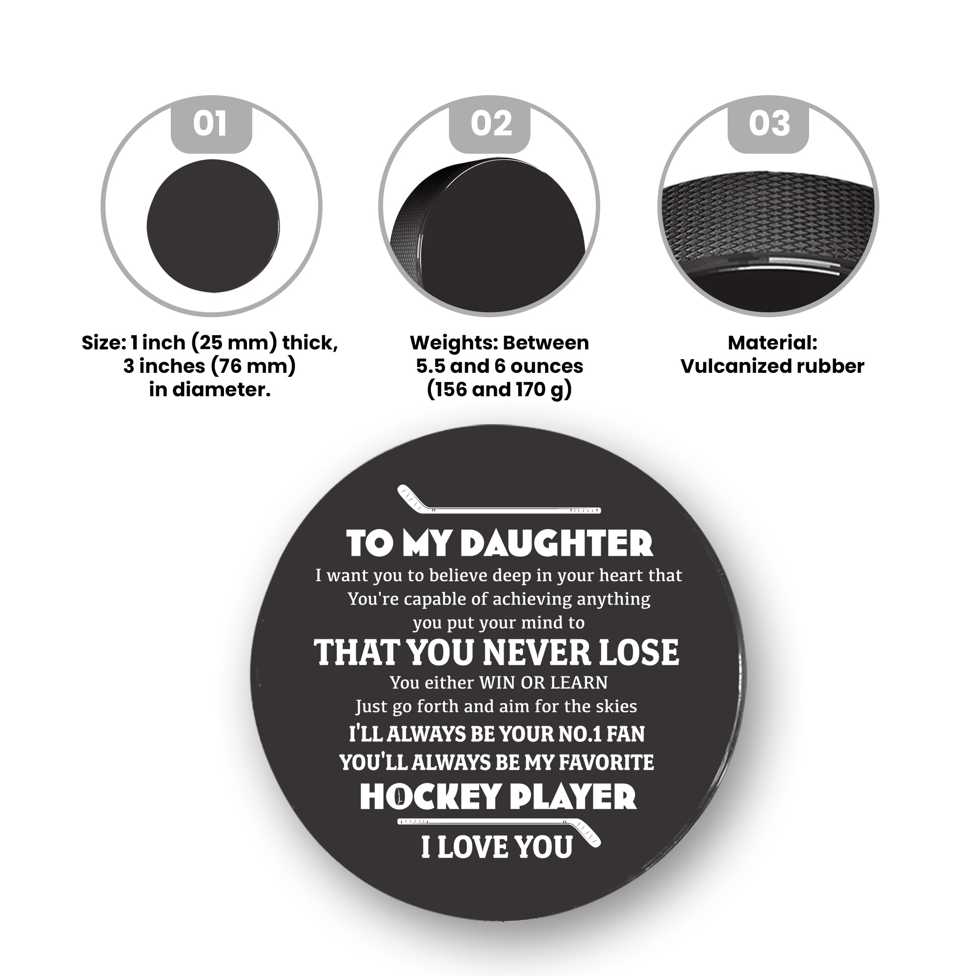 What is the best hockey gift idea for your Daughter on her Christmas, Birthday, Graduation, Thanksgiving, etc? There might be no better gift idea than a Hockey Puck enclosed with a meaningful message for her?