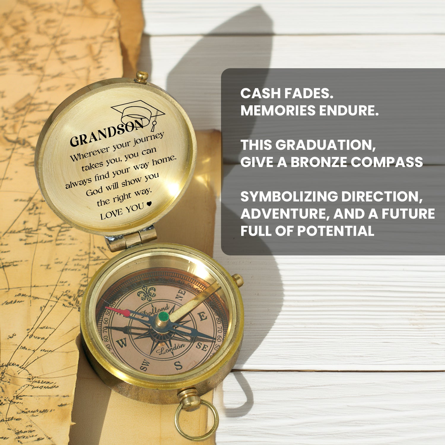Looking for a gift that truly speaks volumes to your grandson? Forget fleeting trends and give something deeply meaningful: the Engraved Brass Compass. It's more than just a gift; it's a lasting keepsake that symbolizes guidance, adventure, and the bright path ahead. This compass is a tangible reminder of your enduring love and support, designed to be cherished for generations.