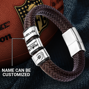 What is the best American Football gift idea for your Son on his Birthday, Anniversary, Christmas, Thanksgiving, Graduation, etc? There might be no better gift idea than this Personalized Leather Bracelet?