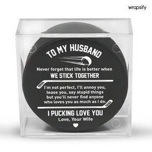 Perfect for Any Occasion: Whether it's his birthday, your anniversary, or just because, this hockey puck is versatile enough for any special moment. Its heartfelt and humorous message makes it the ideal gift year-round.