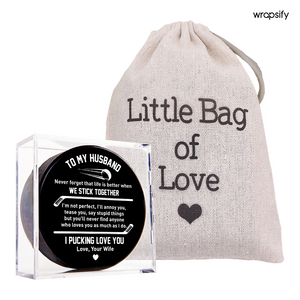 Funny and Heartfelt Message: Crafted with care, each hockey puck is custom engraved with a message that captures the essence of your relationship. It’s more than just a gift - it’s a keepsake that tells your love story.