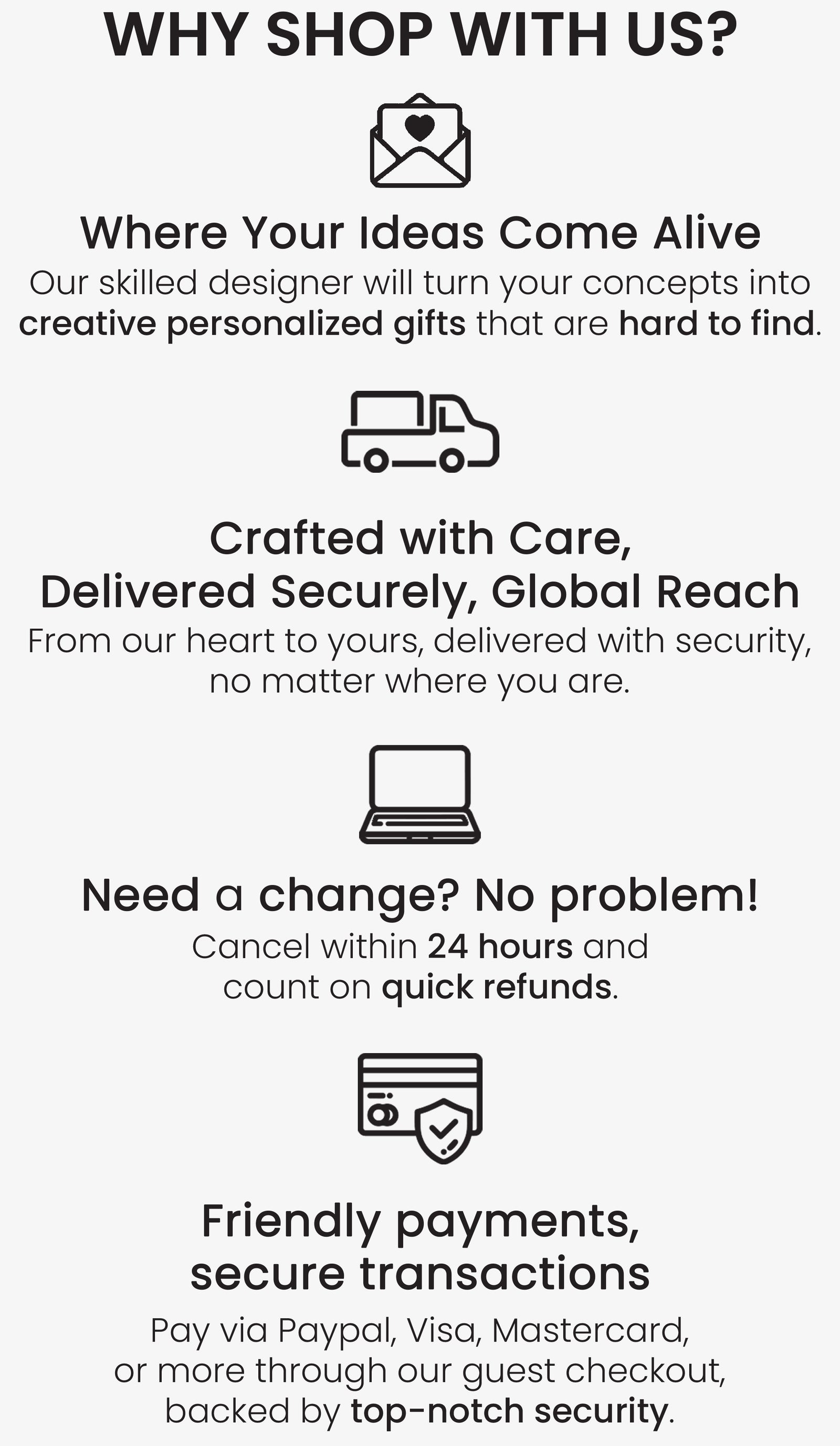 Normally, it takes 2-3 business days to complete your request. Additionally, personalized products require more detail and effort. Sometimes, there will be some products that have a minimum extra fee for production, typically around $5-$10. We hope you will understand.